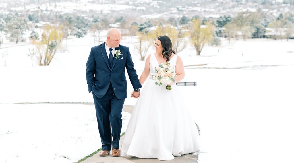Snowy spring wedding reception at Cheyenne Mountain Resort in Colorado Springs, CO