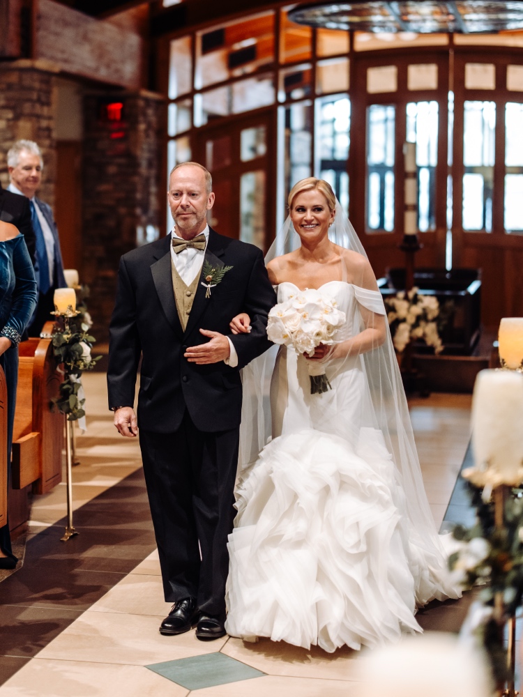 That mindset shaped the reception in thoughtful ways. They chose a private cake cutting in the speakeasy rather than turning it into a moment of public attention. Their first dance began with a softer entrance, allowing it to feel intimate rather than performative. Even during the father-daughter dance, participation was encouraged so the moment felt more like a joyful sing-along than a spotlight. Every part of the evening was designed to keep the focus on connection rather than formality.